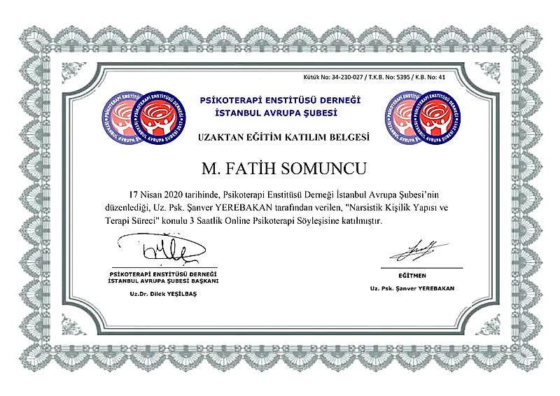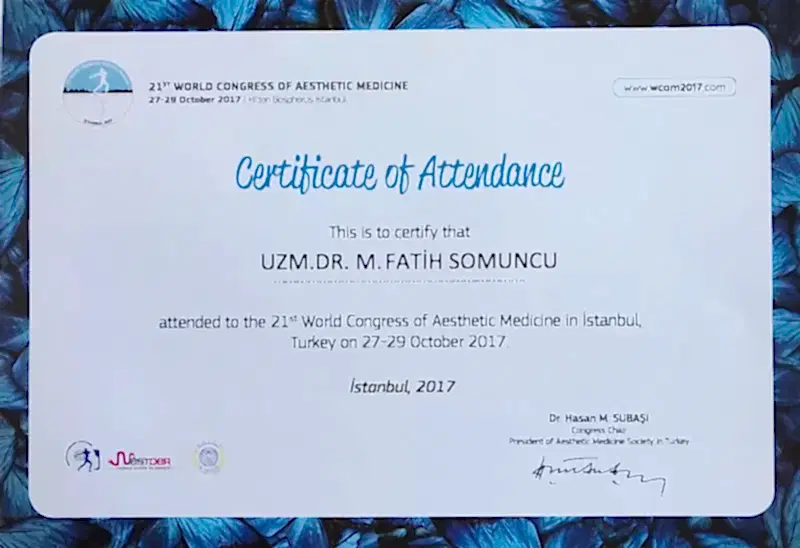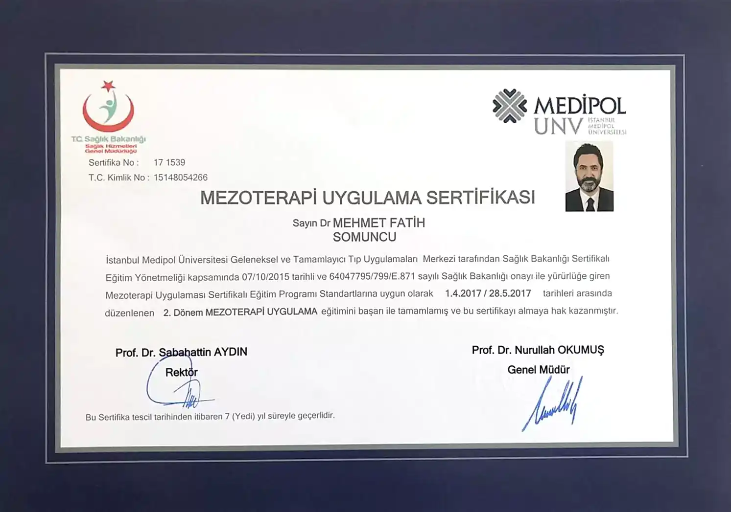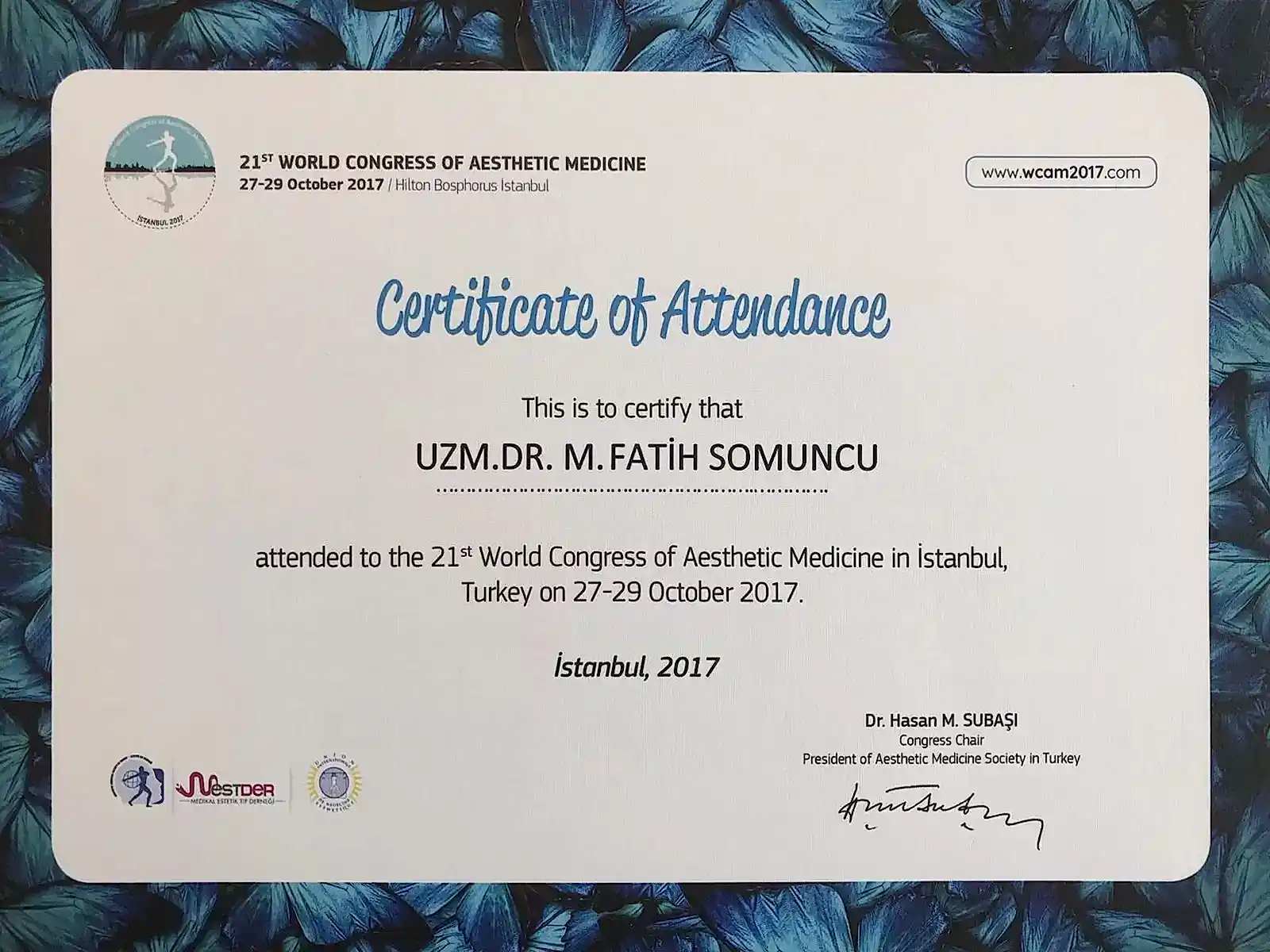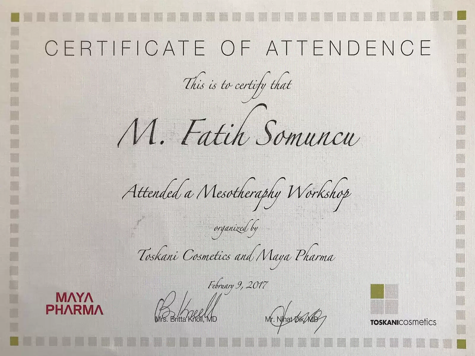 Sağlık Bakanlığı tarafından düzenlenen ‘Estetik ve Kozmetik Uygulamaları’ sertifikasyon eğitimini gerek teorik gerekse pratik bölümlerinden ‘tam puan’ alıp üstün başarı ile bitirip sertifika almaya hak kazanmıştır.