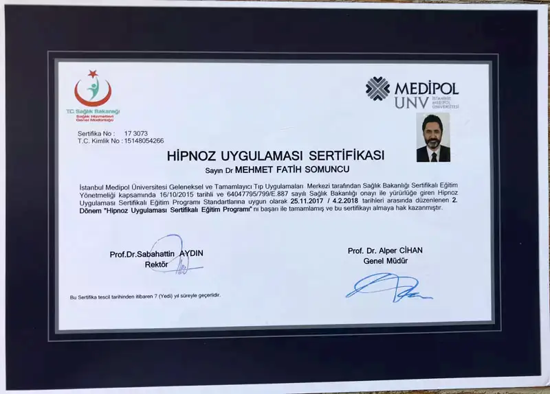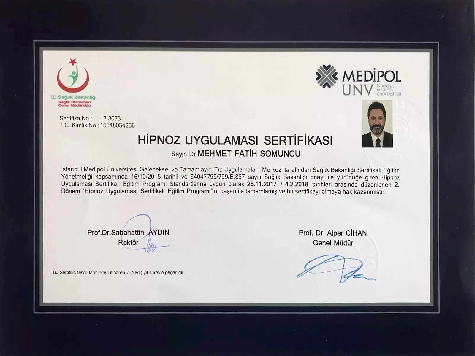 Dr.Fatih SOMUNCU, Son 5 yıldır holistik tıpa ilgi duymuş ve insana bütüncül bakmayan yaklaşımların eksik kalacağının farkındalığını kazanmıştır. İnsanı ruhu, zihni ve bedeni ile birlikte ele alan yaklaşımlarla ancak ve ancak hastaların gerçek şifaya ulaşabileceğine inanmaktadır. Çalışmalarını, okumalarını hep bu pencereden yapmaktadır. Hipnoz özel ilgi alanıdır. Psikolojiye yoğun profosyonel bir merakı vardır. Önce kendisini keşfetmek için bir yolculuğa çıkmış ve psikoterapi, hipnoterapi alanında eğitimler almıştır. ‘İnsanın ilk doğumu annesinden, ikinci doğumu ise kendini keşif sürecinden geçer’ sözüne inanmaktadır.